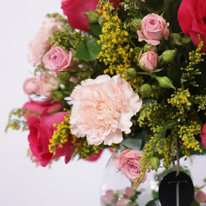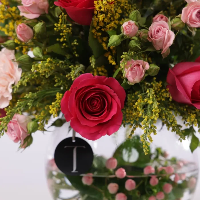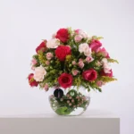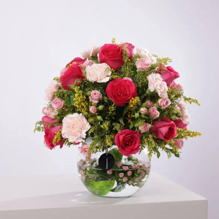 احتفل بالحب مع باقة “عبير المحبة” الفاخرة، بتنسيق أنيق يجمع بين الورود الحمراء والوردية مع لمسات من الزهور الصفراء في فازة زجاجية دائرية، ألوانها الدافئة وتنسيقها الراقي يعبّران عن أصدق المشاعر، لتكون الهدية المثالية في كل مناسبة رومانسية أو للتعبير عن الامتنان لمن تحب، هذه الباقة تملأ المكان بجمالها وعبيرها، وتبقى ذكرى لا تُنسى في قلب من تهديه إياها